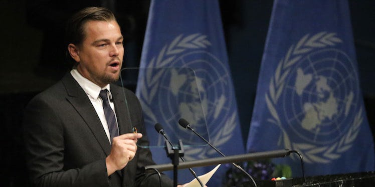 Leo gave this speech just a day after he was named one of TIME magazine's "100 Most Influential People," largely for his efforts to spread awareness on climate change.